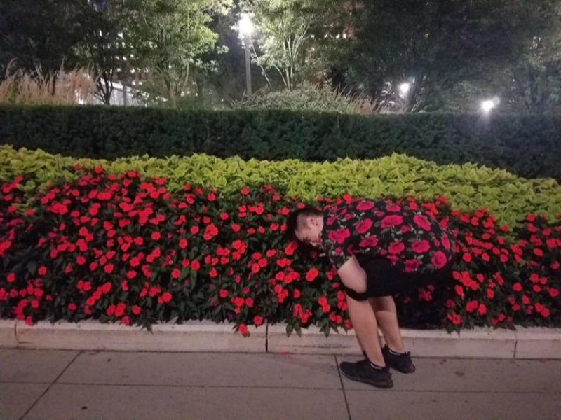 Es fehlen nur noch Hosen mit Blumenmuster. Das Outfit des Motivs vervollständigt die Illusion fast, aber ein Detail sticht hervor und fügt der Szene einen Hauch von Humor hinzu. Dieses verspielte Bild erinnert uns daran, dass Perfektion nicht immer notwendig ist, damit ein Moment unvergesslich wird – und manchmal sind es die kleinen Unvollkommenheiten, die uns zum Lächeln bringen.