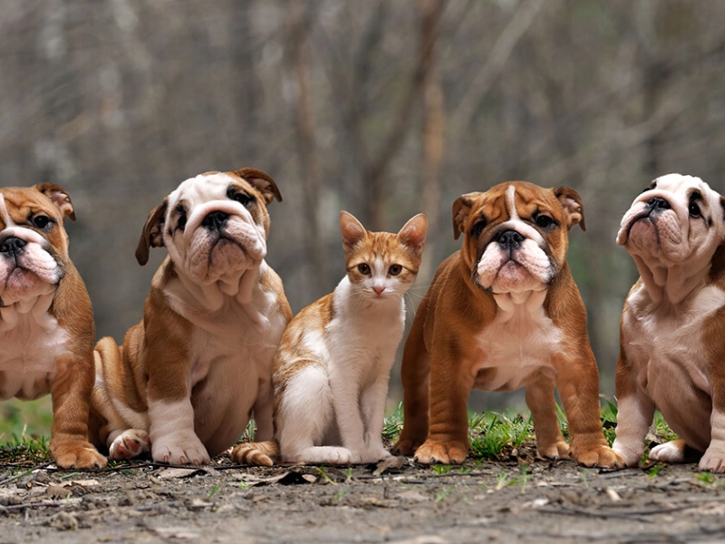 4 Hunde und ein verdienter Spion. Die Herausforderung hier besteht darin, die verborgene Gestalt unter den verspielten Welpen zu entdecken, eine Aufgabe, die durch clevere Tarnung noch schwieriger wird. Dieses Bild verwandelt eine einfache Zusammenkunft in ein herrliches Spiel und lädt Betrachter ein, ihre Beobachtungsfähigkeiten zu testen und den Nervenkitzel der Entdeckung zu genießen.