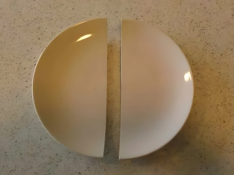 Was geschah: Ein Teller zerbrach perfekt in zwei HälftenWo: Unbekannt